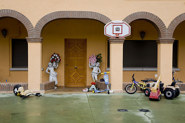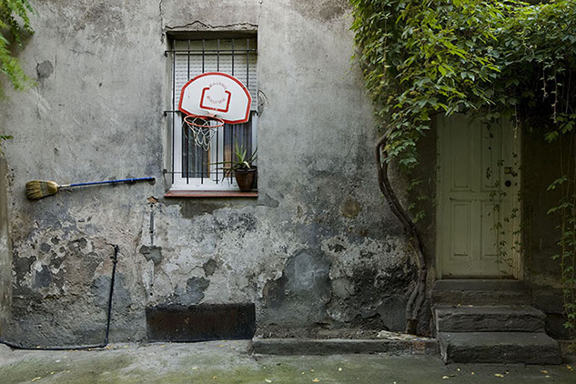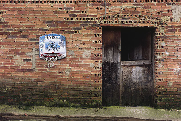 El motivo de esta serie son canastas de baloncesto, que por su forma, ubicación o los elementos que las rodean me incitan a fotografiarlas. Las canastas son solo una excusa para imaginar la vida en su entorno y el tiempo pasado.